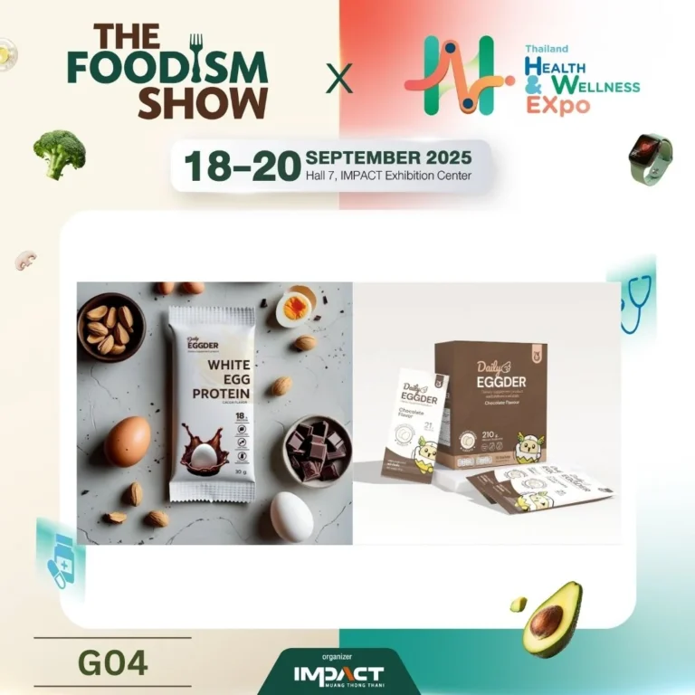 พบกันที่งาน “The Foodism Show” งานอาหารและผลิตภัณฑ์เพื่อสุขภาพที่ล้ำสมัยที่สุด และ “Thailand Health & Wellness Expo” งานนวัตกรรม & เทคโนโลยี และแนวคิดสุขภาพยุคใหม่ ครอบคลุมทั้งการกิน การอยู่ จิตใจ และไลฟ์สไตล์ วันที่ 18 – 20 กันยายน 2568 ณ อาคาร 7 อิมแพ็ค เมืองทองธานี LINE https://lin.ee/24zPomQ  จองบูธ https://thefoodism-show.com/book-your-stand/ ลงทะเบียนเข้าชมงาน https://thefoodism-show.com/visitor-registration/